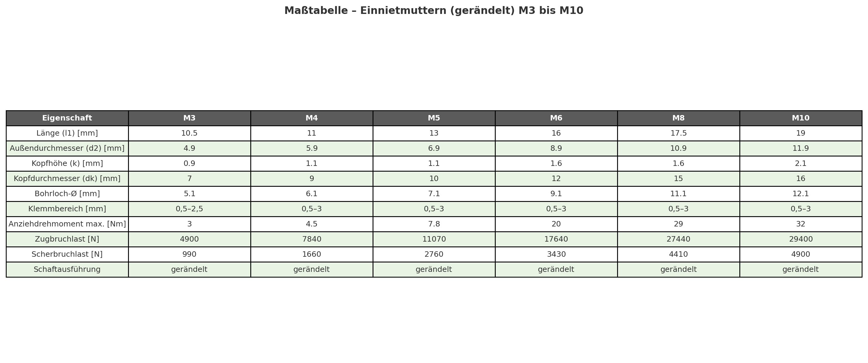 Dieses Produkt wird als Set verkauft. Die Bestellmenge entspricht der Anzahl der Einziehmuttern im Set.